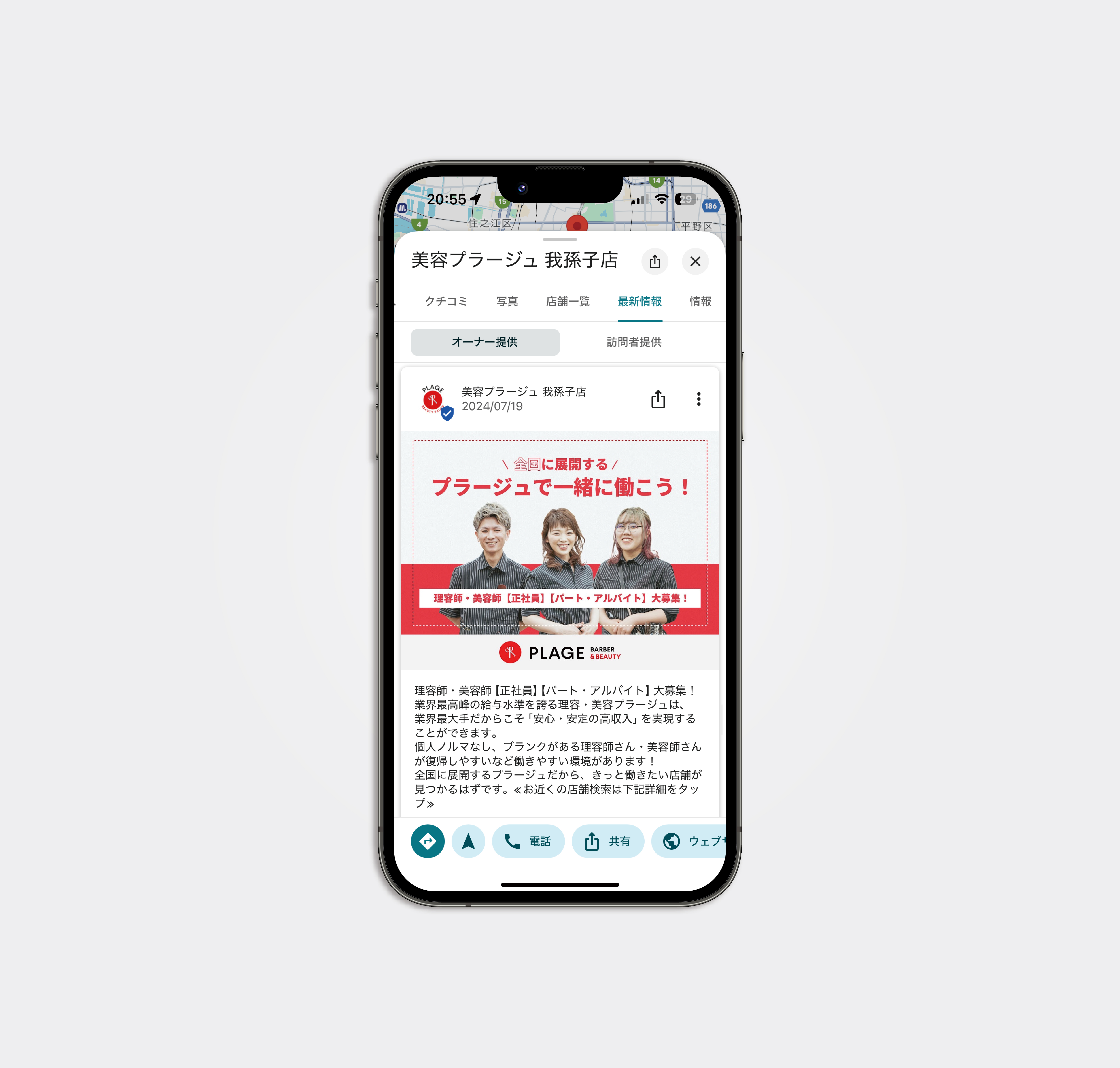前職で制作した、Googleマップの新着情報に掲載する求人バナーです。